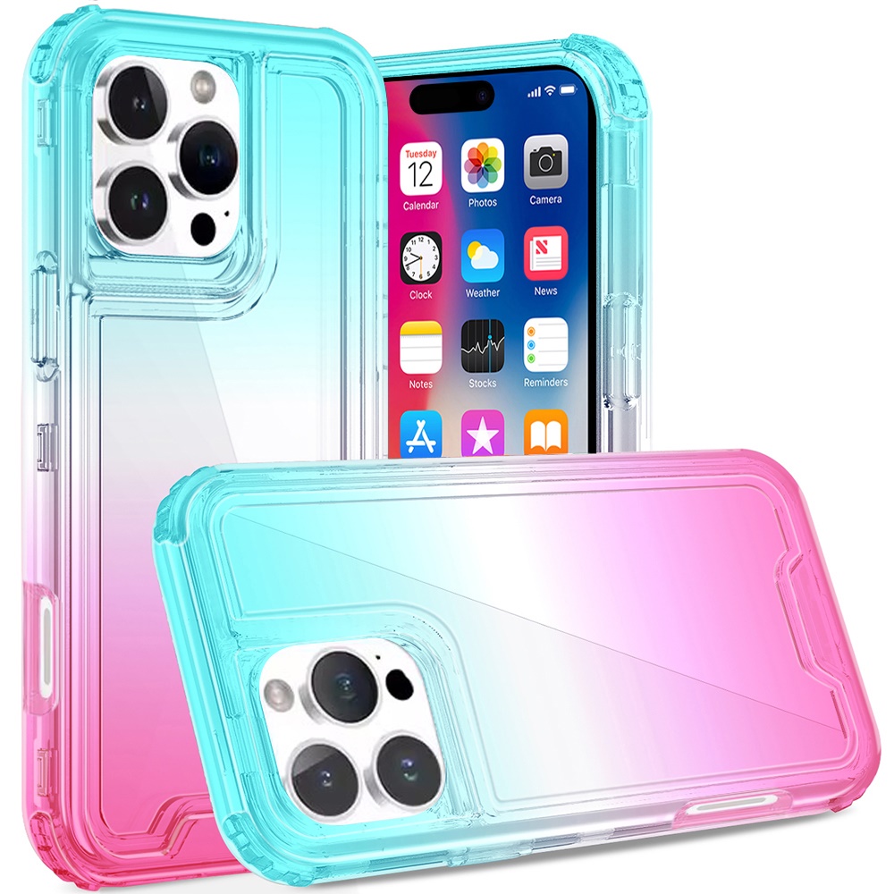 HR CASES IPHONE 16 PRO 6.3 INCH 3IN1 TWO TONE SHOCKPROOF TRANSPARENT HYBRID CASE (QBTTONE-IP16PRO-LBPNK)